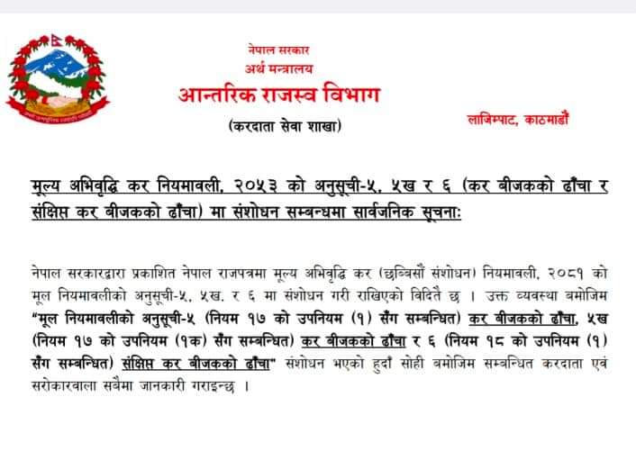 The Inland Revenue Department (IRD) has issued a notification stating that the formats of VAT bill & Summarized VAT bill have been updated...
